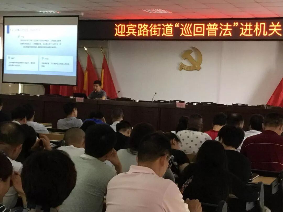 为全面提升郑州市惠济区迎宾路街道办事处行政人员依法行政能力素质和法律意识。近日,迎宾路街道办事处举行“巡回普法”进机关活动。我所主任毛明星应邀进行《法律基础知识培训》的专题讲座。