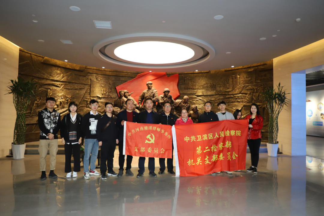 2020年11月10日,在中共河南修谨律师事务所支部委员会、中共卫滨区人民检察院第二检察部机关支部委员会联合赴新乡市太行红色文化教育基地开展“不忘初心、牢记使命”主题党日活动。此次主题党日活动分别由修谨律所党支部书记王星波和卫滨区检察院第二检察部机关党支部书记褚予州带队,党员同志们在讲解员的带领下,学习参观太行红色文化教育基地“辉县人民干得好展览馆”,该展览馆是由全国劳动模范范清荣主持修建。